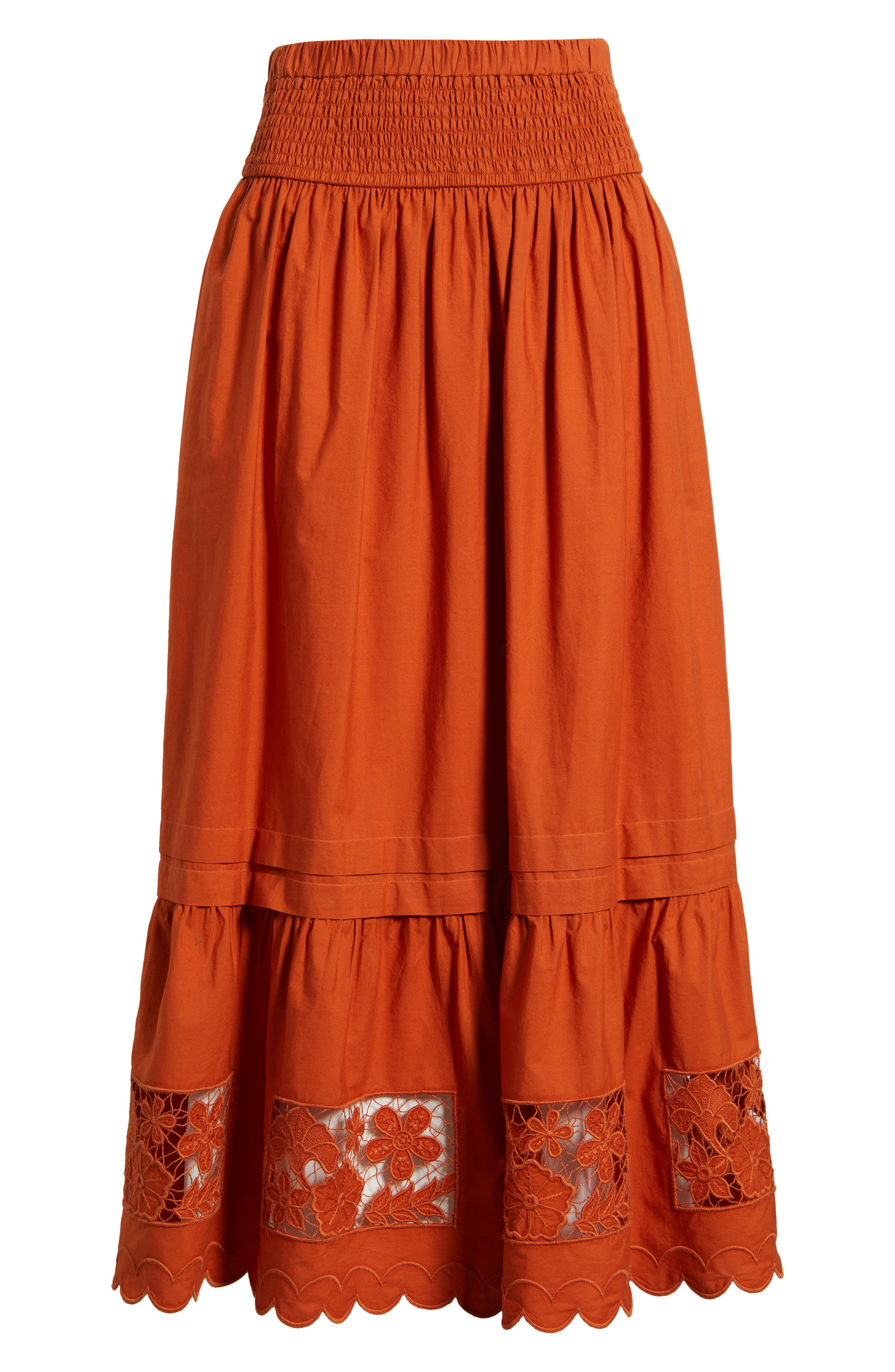 LOVE THE LABEL Nolan Smocked Waist Embroidered Cotton Eyelet Midi Skirt in Cinnamon at Nordstrom