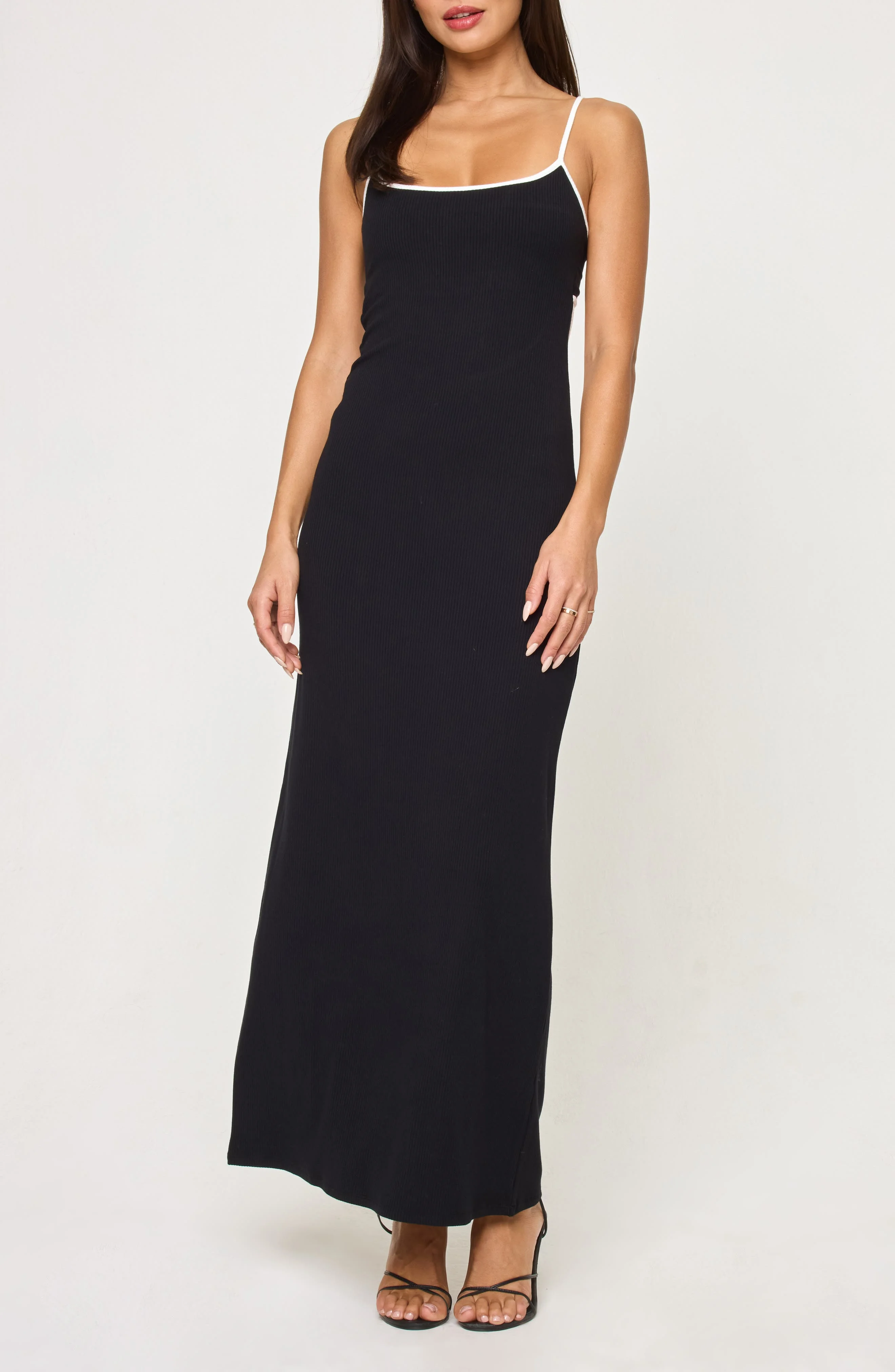 LSPACE Jordana Rib Cover-Up Maxi Dress in Black /Cream at Nordstrom