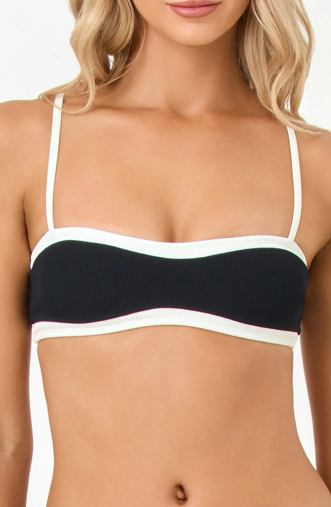 LSPACE Madison Rib Bikini Top in Black/Cream at Nordstrom