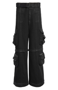 Cargo language goes supersized with bellowed pockets that read plush not bulky on these lookbook-featured pants from the fall '25 collection. A grunge-tinged wash skims the rigid denim and sets off the hardware with a stealthy gleam. Zip-off panels redraw the leg and reveal a second silhouette that feels fast and decisive. Zip fly with button closure Front slant pockets; cargo bellows pockets; back flap-patch pockets Removable belt Zip-off legs allow an easy transition from pants to shorts as temps change 100% cotton Hand wash, line dry Made in Italy Designer Clothing