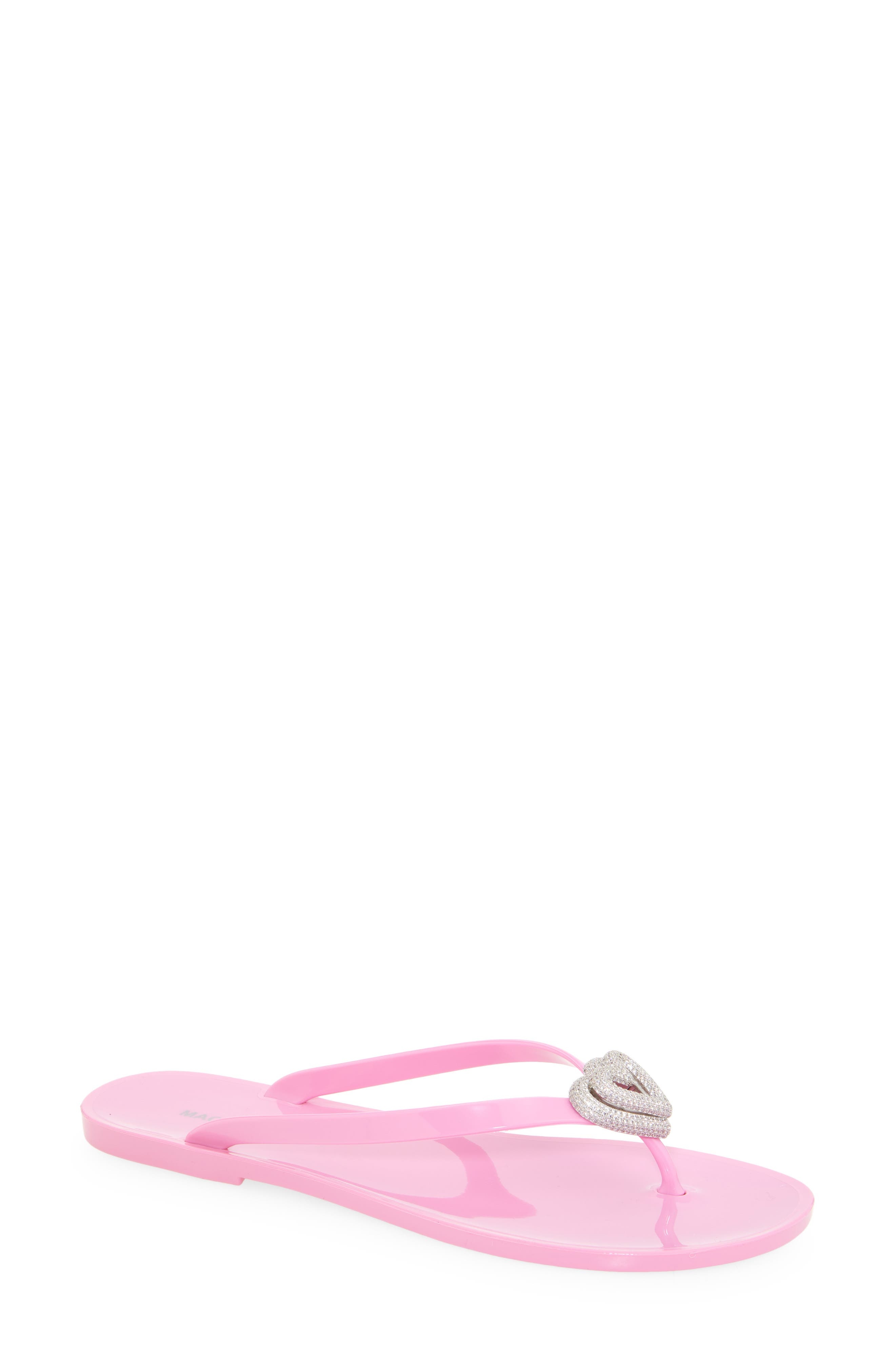 Mach & Mach Double Crystal Heart Flip Flop in Pink at Nordstrom