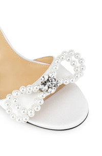 Mach & Mach Double Faux Pearl Bow Sandal in White at Nordstrom