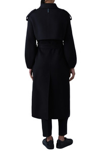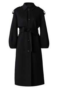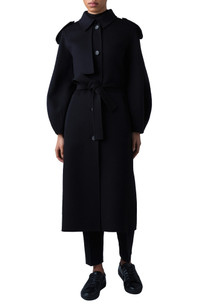 This single-breasted, longline coat handcrafted from luxuriously soft double-face wool is defined by a sash belt while balloon sleeves add modern dimesion. 46" length Front button closure with hook-and-eye closure Shoulder epaulets Right-side rain shedder Removable tie belt Front welt pockets Back vent Unlined 100% wool Dry clean Imported