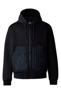 This lightweight jersey hoodie helps you face the cold weather in style with its quilted, down-filled front panels providing extra warmth and its relaxed fit allowing for easy layering. 27" length Front zip closure Drawstring hood Front slant pockets Lined, with 90% down, 10% feather fill (China) 53% cotton, 47% polyester with 82% recycled nylon, 18% elastane and 72% nylon, 27% polyester, 1% elastane contrast Made in China