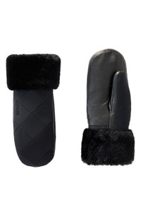 The season's coldest temps are no match for the cozy warmth of these mittens insulated with lofty down and finished with a plush faux-shearling trim. Fleece lined, with duck down 82% recycled nylon, 18% elastane; 100% polyester faux shearling Machine wash, dry flat Imported