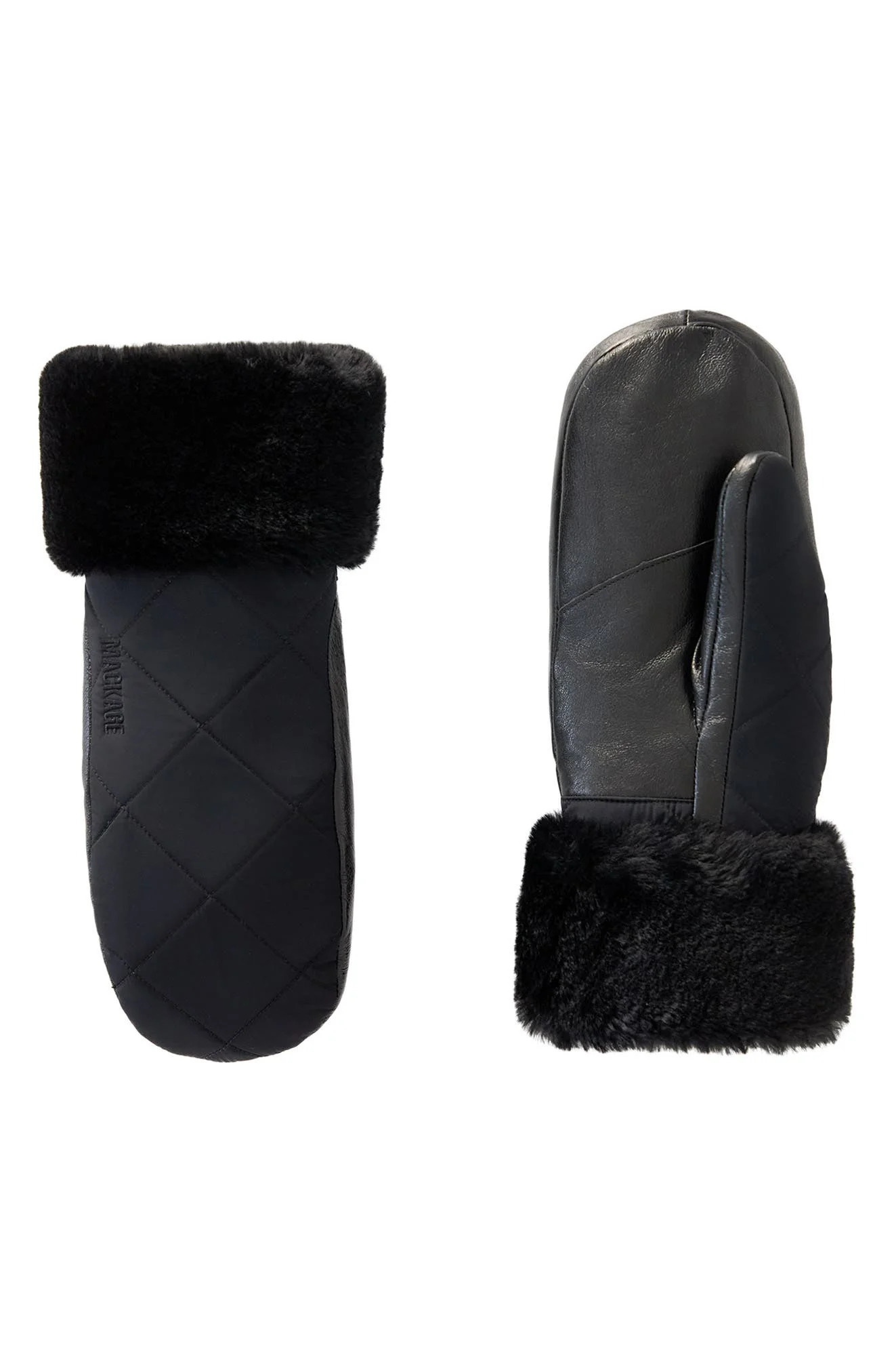 Mackage Fleece Trim Quilted Down Mittens in Black-Black at Nordstrom
