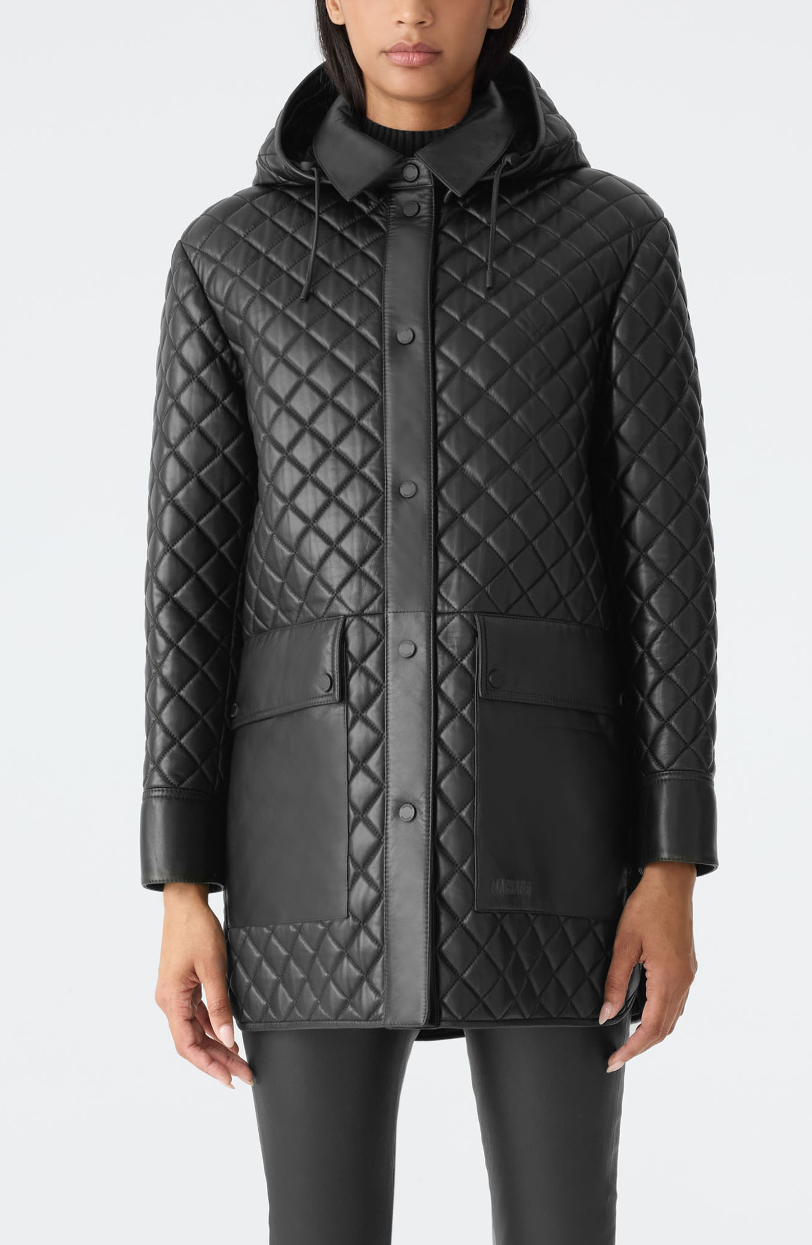 Mackage Litzy Quilted Hooded Leather Jacket in Black at Nordstrom