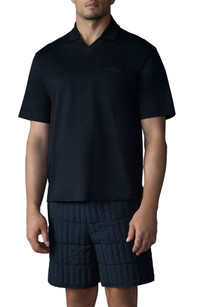 The renowned outerwear maker gets back to the base layer with this polo made from organic-cotton interlock and made in a relaxed fit for wearing beneath heavier layers. Tonal silicone branding marks the chest. 27 1/2" length (size Large) Johnny collar Short sleeves Side slits 100% organic cotton Machine wash, dry flat Made in Portugal