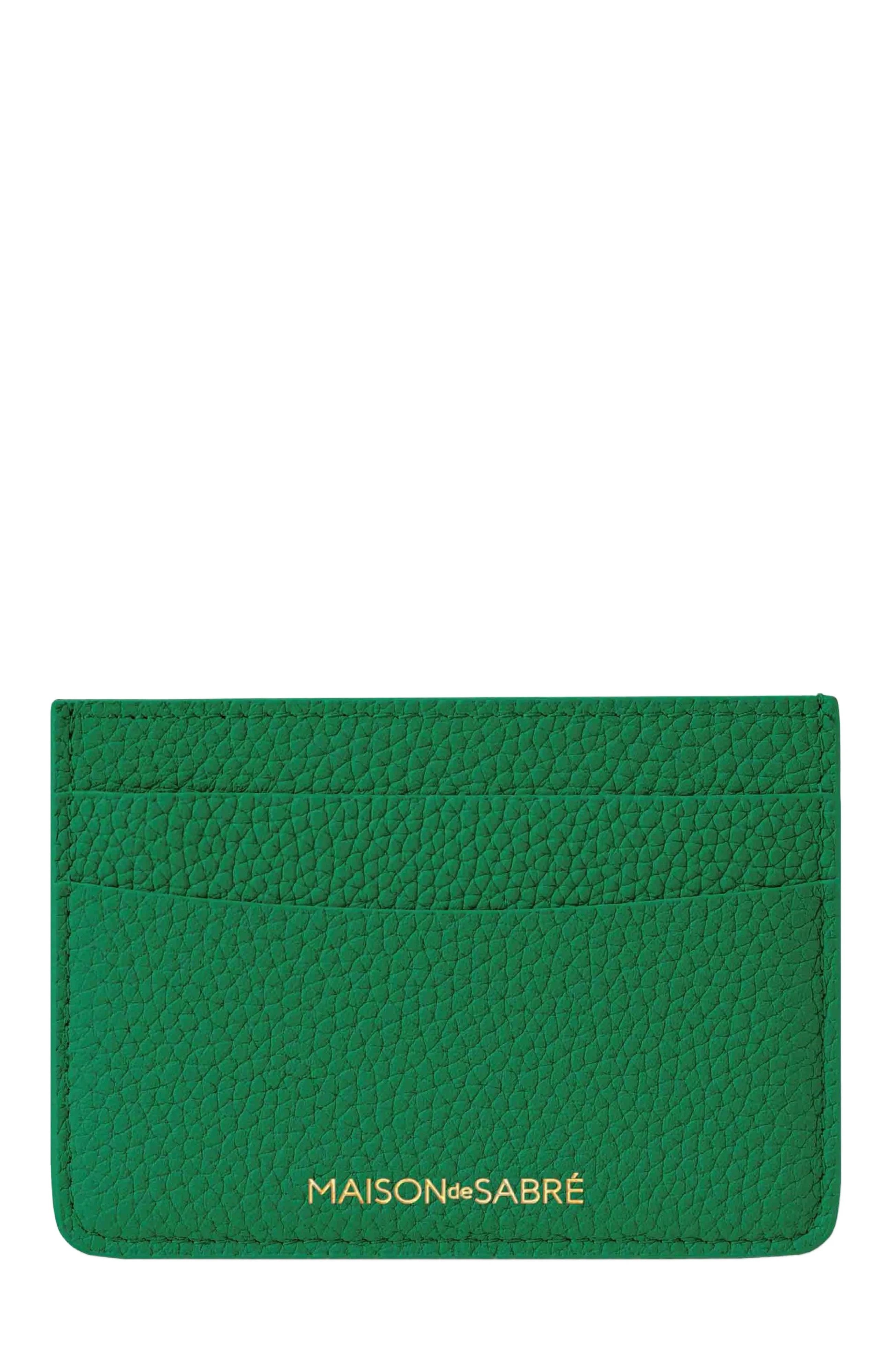 MAISON de SABRÉ Leather Card Holder in Emerald Green at Nordstrom