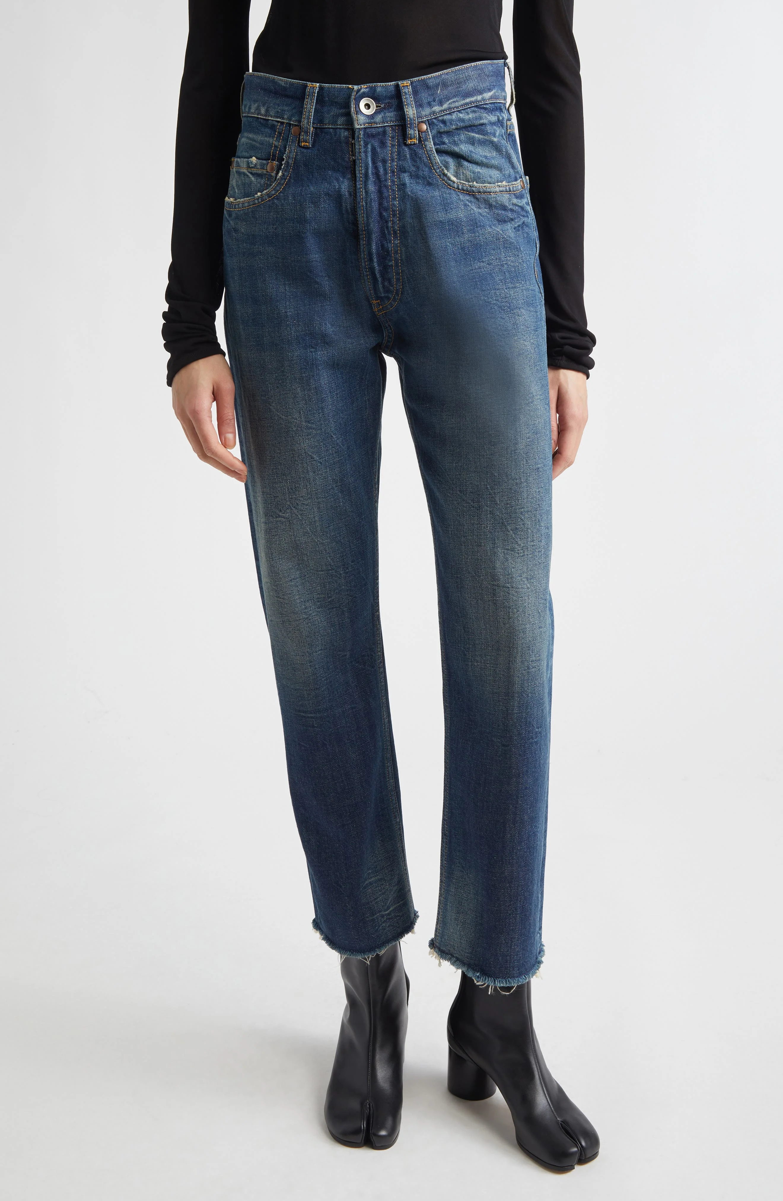 Maison Margiela Distressed Raw Hem Straight Leg Jeans in Blue Wash at Nordstrom
