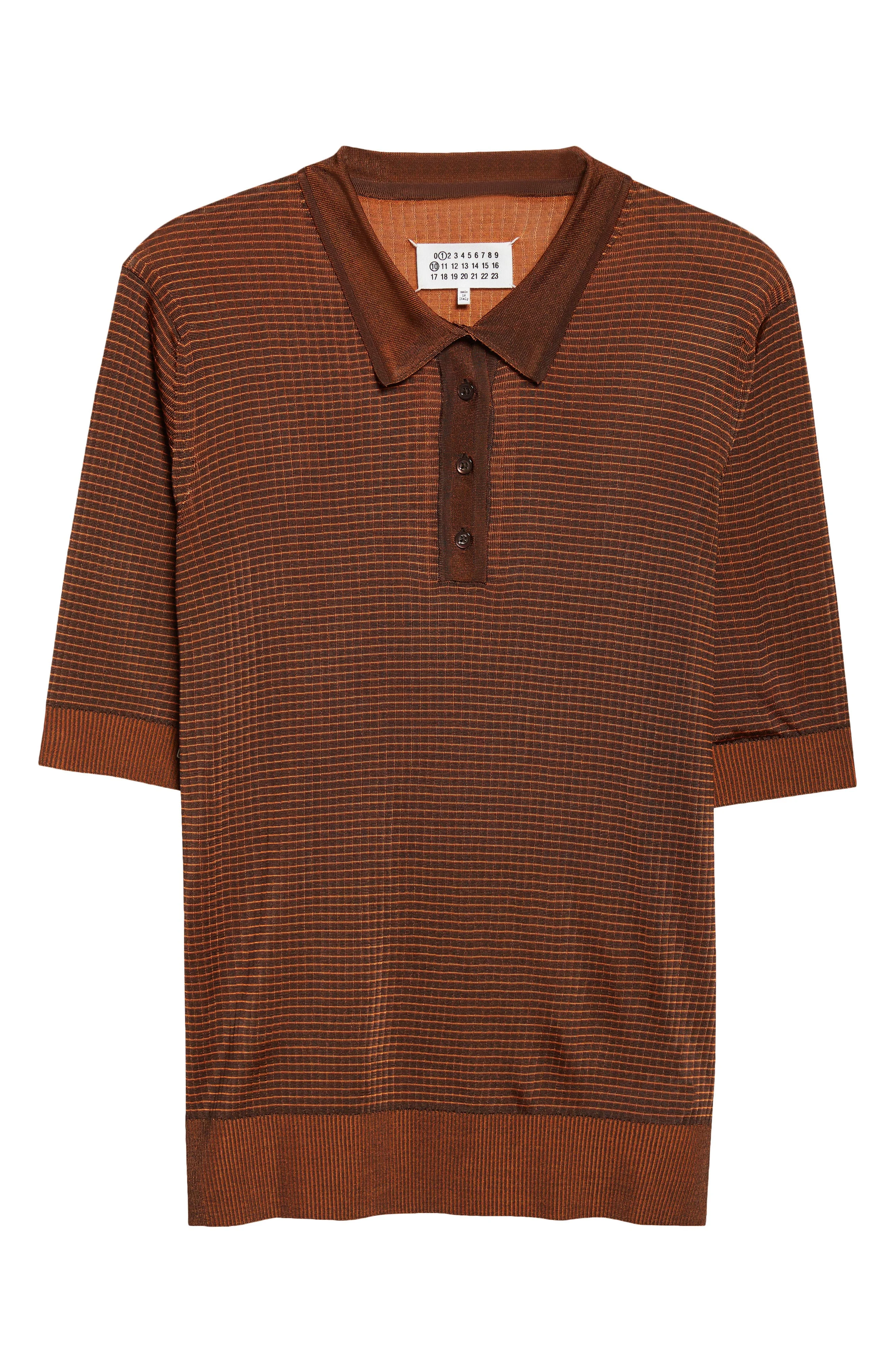 Maison Margiela Stripe Plaited Rib Polo Sweater in Dark Brown/Orange at Nordstrom