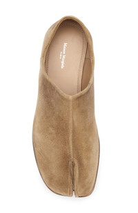 Tabi Split-Toe Collapsible-Heel Suede Loafers Beige