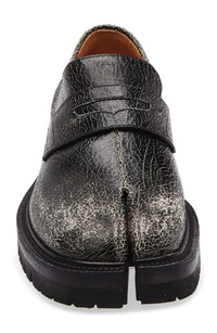 Merging a fifteenth-century Japanese tabi sock and a prepster-classic loafer, this lug-soled style crafted with supple Italian calfskin fuses avant-garde and traditional aesthetics. A single white basting stitch at the heel counter provides an unmistakably Margiela touch. Leather upper and lining/rubber sole Made in Italy Designer Shoes