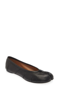 Merging a fifteenth-century Japanese tabi sock and a classic ballerina flat, this split-toe flat is both avant-garde and traditional. Signature touches include a white basting stitch at the back and numerical debossing along the sole. Leather upper, lining and sole Made in Italy Designer Shoes