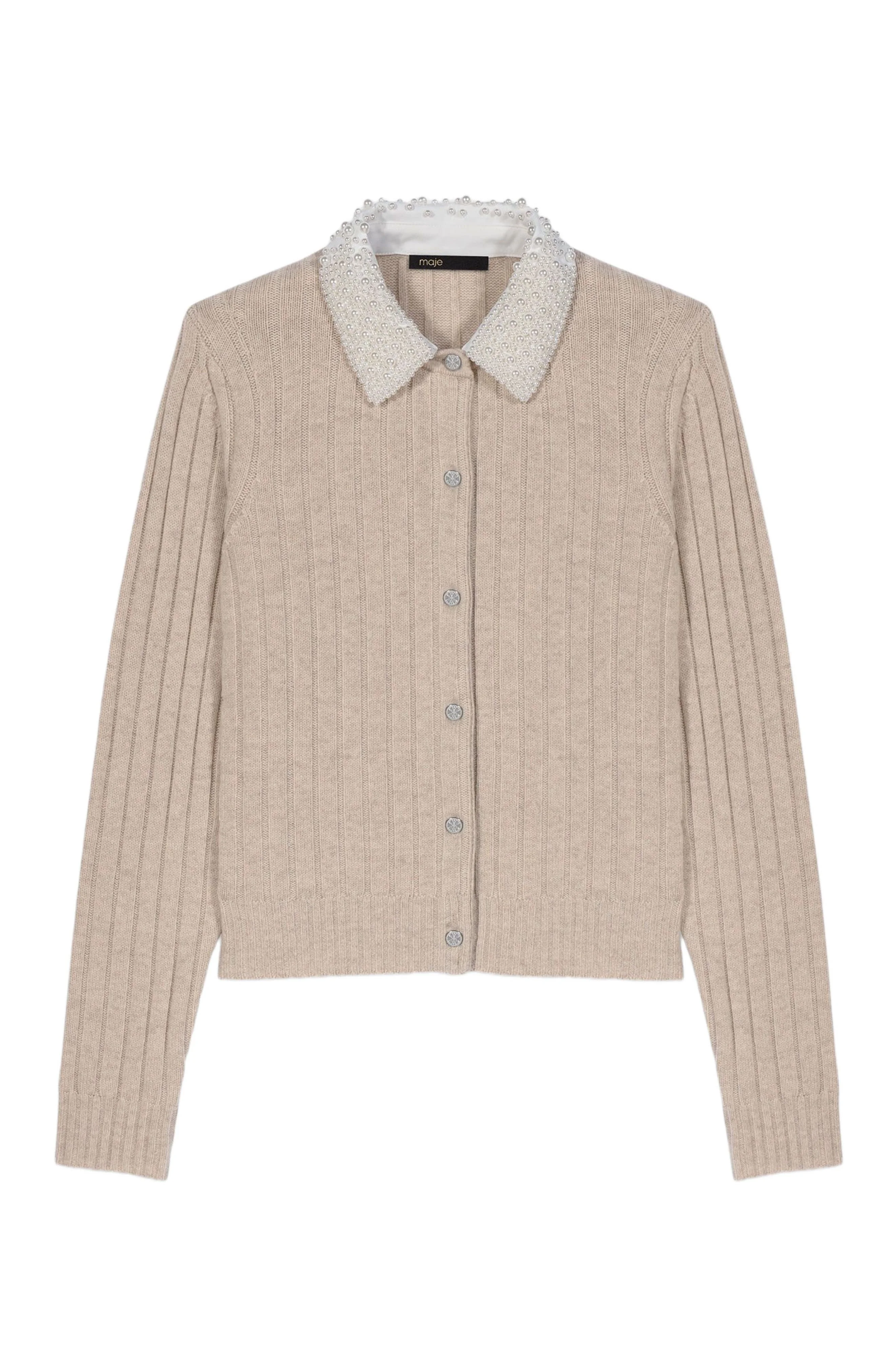 maje Cardigan with removable bead collar in Beige at Nordstrom