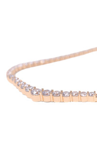 A touch of audacity makes its way into the collection, embracing refinement down to the most sparkling accessories.This cascading rhinestone necklace shines with graphic elegance. A flexible row of faceted crystal-style stones, set on fine gold-plated brass, drapes in a V-shape at the hollow of the neck, creating a bright, feminine line. The subtle gradation of the stones beautifully accentuates the neckline, while the box clasp secures and completes the piece with a jeweller's precision. Necklace with a 100% fine gold-plated recycled brass chain Crystal-style stones Flexible, articulated setting Box clasp with a side safety catch Distinctive central V-shape The model is 5'8 tall and wears a size one size