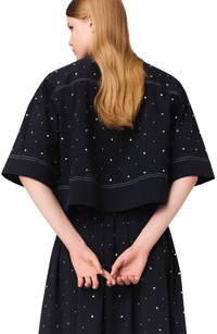 Maje modernises the wardrobe with a modern twist, offering a stylish transition between seasons.This studded canvas shirt features a cropped cut, both chic and casual, with contrasting topstitching. Longer at the back, it has a patch pocket on the chest and a button fastening with covered placket. An ideal choice to pair with the matching skirt, a top and square-toed ballet flats. Cropped studded canvas shirt with contrasting topstitching Longer at the back Patch pocket on the chest Button fastening with covered placket The model is 5'9 tall and wears a size 1