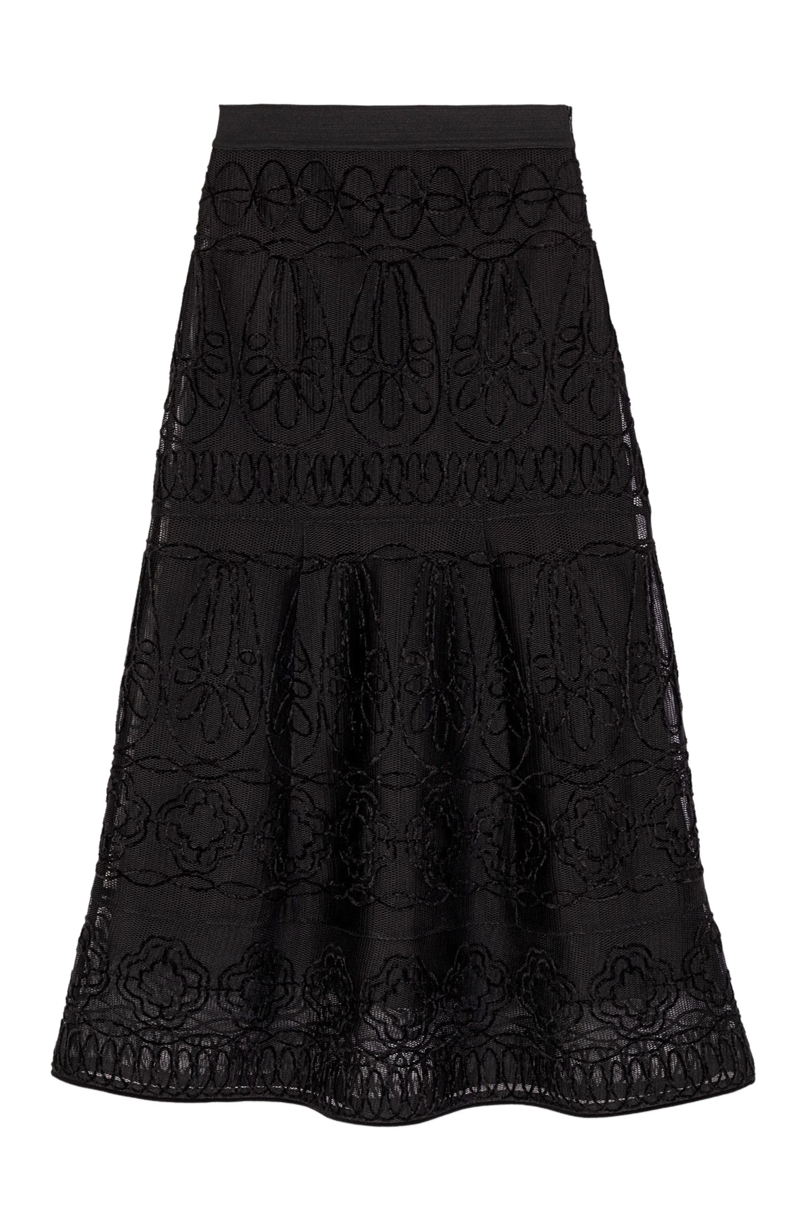 maje Embroidered basket-weave knit skirt in Black at Nordstrom