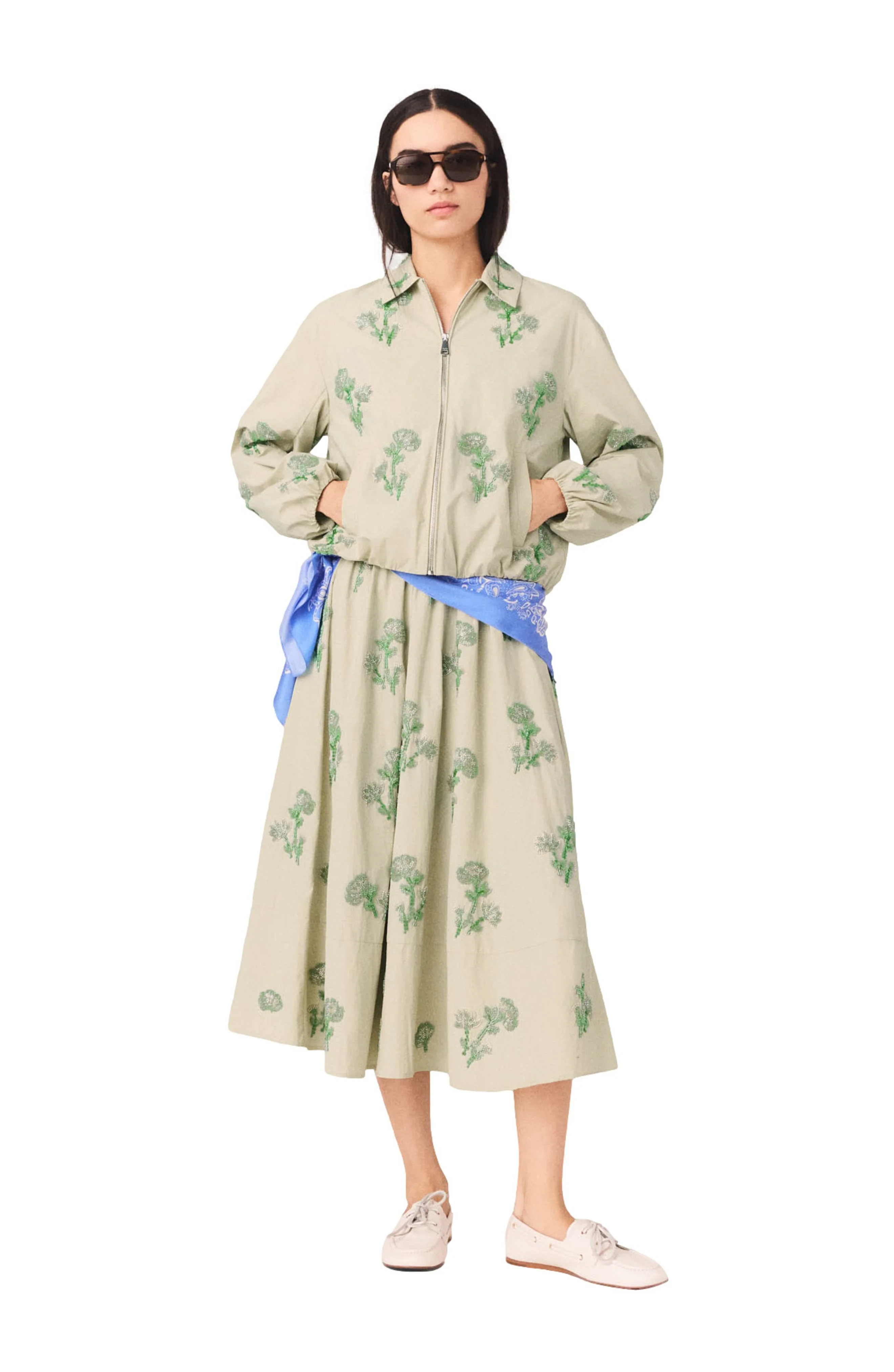 The collection breathes new energy where technicality meets poetry, inviting the Maje woman to play with contrasts and assert a style defined by light and freshness.This loose, blouson-style jacket captivates with its multicoloured pearl flower embroidery, enhancing the silhouette with a refined sparkle. The elasticated cuffs and hem create a modern volume, while the silver-tone zip and discreet pockets anchor the whole look in a bold, metropolitan style. Jacket embroidered with floral beads Loose, blouson-style fit Silver-tone zip fastening with Maje engraving Vertical welt pockets on the front Elasticated, gathered cuffs and hem The model is 5'7 tall and wears a size 4