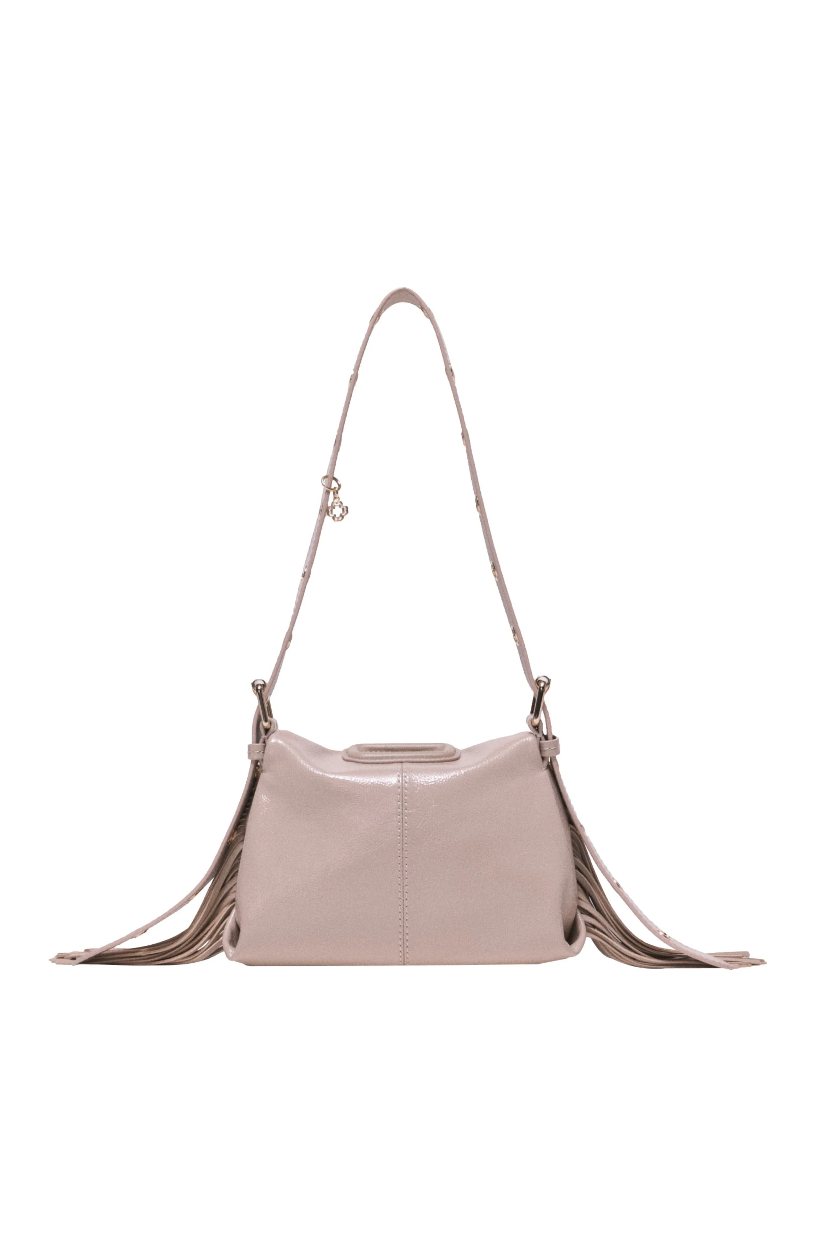 A real fashion statement, Maje unveils one of the timeless pieces in its collection: the Miss M. With refreshing modernity, this model revisits the iconic codes of the M bag. It features the emblematic signatures of rectangular sheathed handles and delicate fringes. This version is enhanced by Naplak leather, a leather with a natural pleated effect that has been given a glossy finish on the surface. It retains the smooth feel of leather while having a shiny finish.Its mini size allows you to carry all your essentials. Its long, adjustable strap, adorned with eyelets and large buckles, allows you to vary how you wear it as you wish: baguette style for a bold look, on the shoulder for a metropolitan vibe, or crossbody for a more practical touch. The Miss M comes in different materials and sizes to suit every style and occasion. Miss M mini bag in naplak leather Handle adorned with eyelets and flap fastening 3 carrying options: by hand, on the shoulder, or crossbody 1 interior patch pocket Dimensions: 22 x 19 x 11 cm Shoulder strap: 111 cm The model is 5'8 tall and wears a size one size