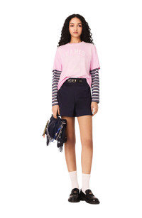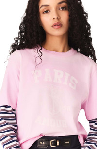 Channeling the energy of the reinvented varsity wardrobe, where the nautical spirit and preppy codes meet.This loose-fit T-shirt combines the softness of cotton, a faded effect and a large crackle-effect print for a vintage look imbued with Parisian character. Layer it over a long-sleeved striped T-shirt and add navy blue shorts, loafers and a Miss M bag for an assertive, modern silhouette. Nautical print T-shirt in cotton jersey Pigment-dye faded effect with a subtle gradient Crackle-effect print of an anchor and PARIS AMOUR lettering Rib knit round neck Integrated Maje signature and founding date The model is 5'8 tall and wears a size 1
