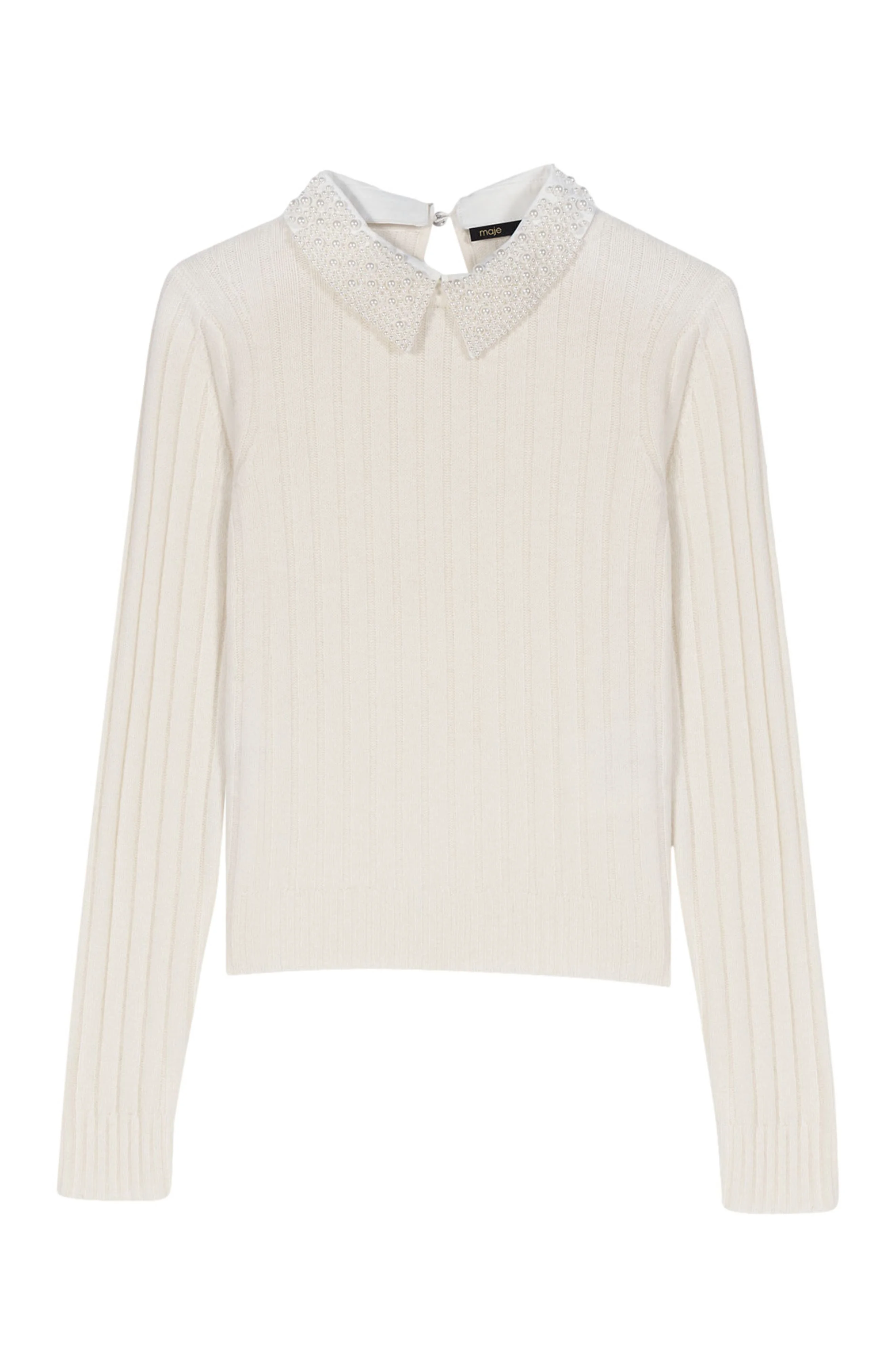 maje Pearl-collar ribbed sweater in Ecru at Nordstrom