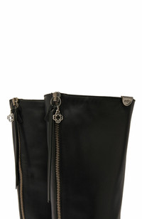 Make a statement day or night with these plain leather boots. The pointed toes and slim heels create a chic, irresistible look. They feature a zip fastening at the back, a Clover charm pull and a Maje engraved badge at the top. Plain leather boots Pointed toes Maje engraved badges at the tops Leather pull tab with Clover charm Zip fastening at back Heel height: 7.5 cm The model is 5'8 tall and wears a size 36