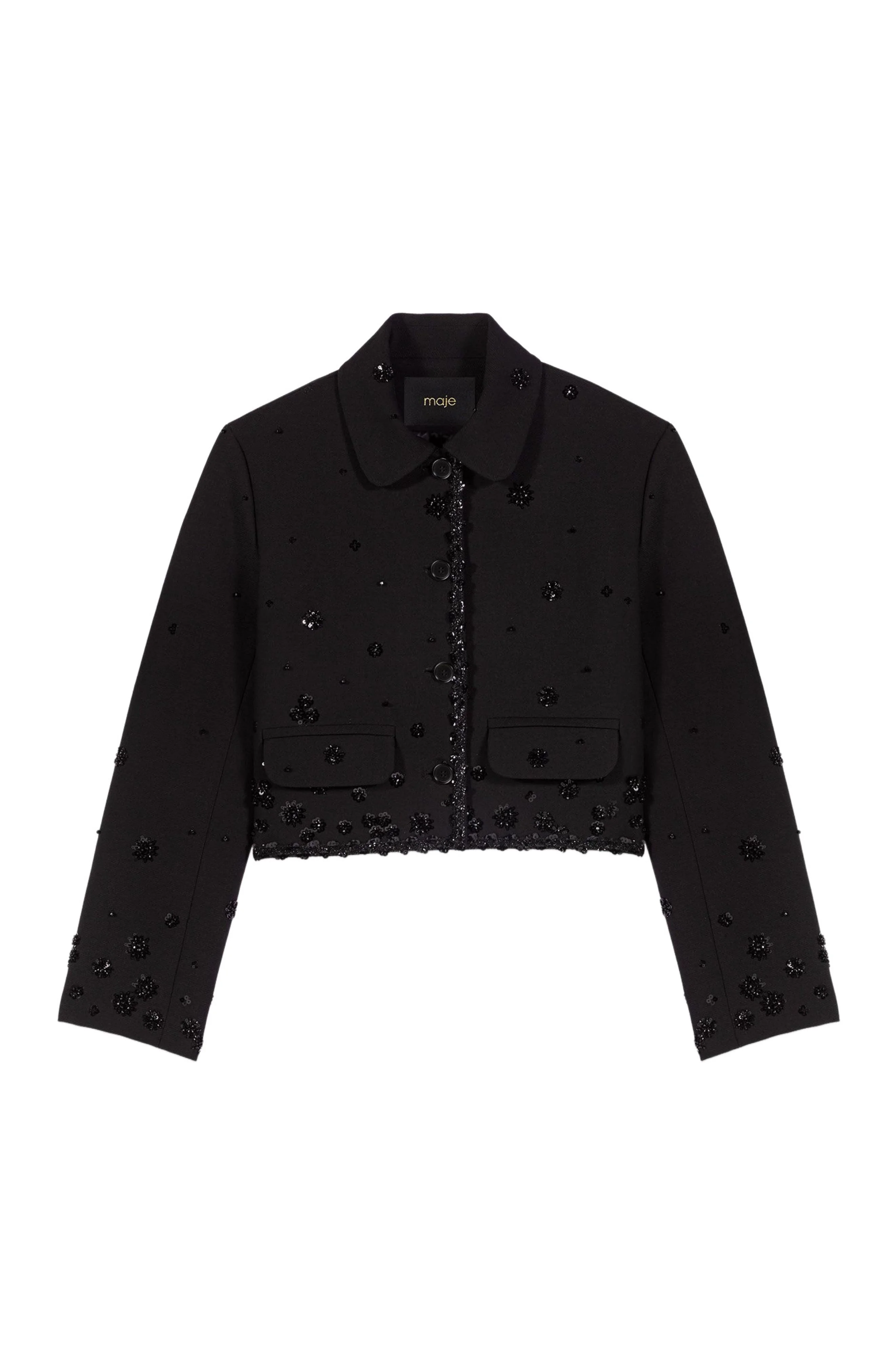 As night falls, silhouettes shimmer and make a statement. Maje reveals pieces designed to shine after dark.This short jacket makes a statement with its sequin embroidery that forms luminous flowers. The contrast between the tailored cut and the exquisite details gives it a bold character. Worn with the matching skirt, it creates a dazzling outfit, perfect for letting your silhouette shine in a festive atmosphere. Short jacket with floral sequin embroidery Long sleeves and front button fastening Two pockets with rounded flaps Satin lining The model is 5'9 tall and wears a size 4
