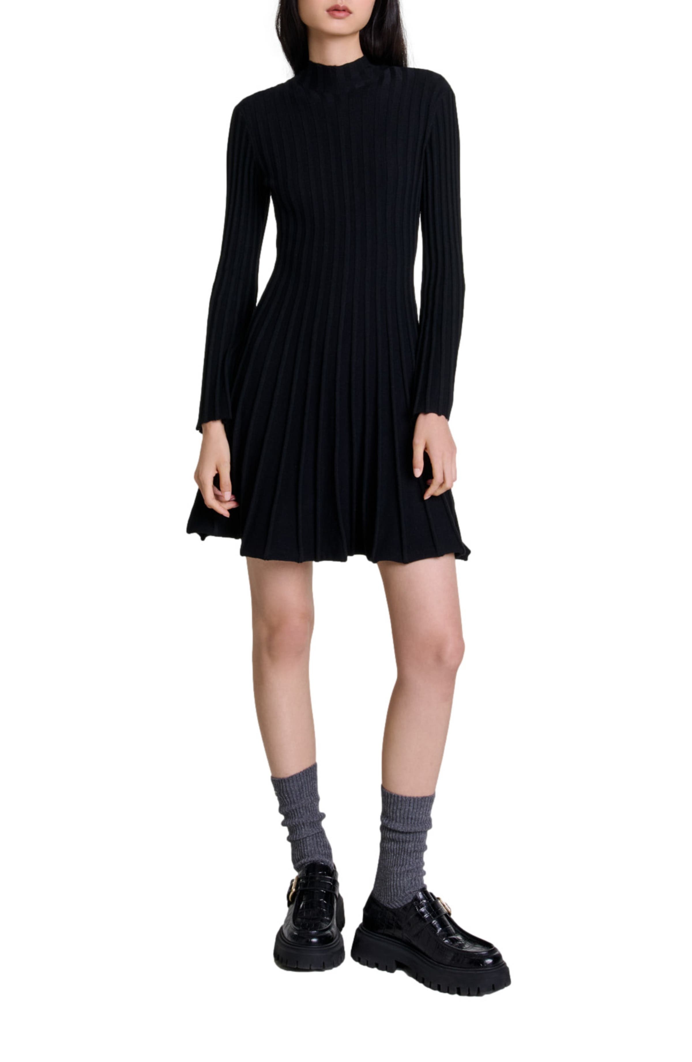 The studio unveils its new collection, the epitome of Parisian chic. Elegance and sophistication unite in a subtle interplay of contrasts and proportions, giving your looks a confident, modern edge. Made from a fine ribbed knit, this short, fitted dress has a flattering flared skirt. Featuring a high neck and flared long sleeves, it has split cuffs with small Clover tags and a teardrop opening at the back embellished with small hooks. For a chic, casual look, create a new twist by teaming with loafers slipped into socks. Fine rib-knit short dress High round neck Long flared sleeves Split cuffs with small Clover tags Teardrop opening at back with small Clover hooks Flared skirt The model is 5'9 tall and wears a size 4