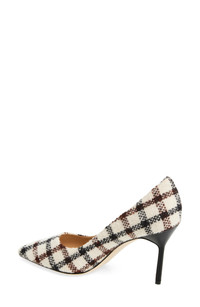 Light Beige Wool Tartan Pointed Toe Pumps