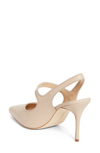 Beige Nappa Leather Pointed Toe Slingback Pumps