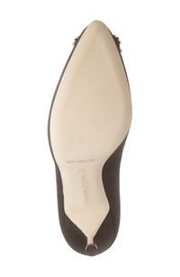 Inspired by the opulence of a French emperor, this almond-toe satin pump holds court with a bejeweled buckle based on one Manolo Blahnik found in Italy. 3 1/4" (83mm) heel (size 8.5US/38.5EU) Textile upper/leather lining and sole Made in Italy Women's Designer Shoes