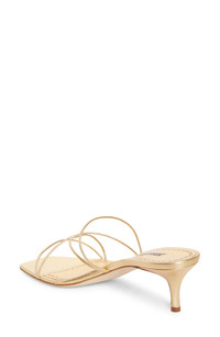 Golden metallic leather lends gilded glamour to a refined slide sandal designed with an angled toe and a modest kitten heel. 2 1/2" (64mm) heel Leather upper, lining and sole Made in Italy Designer Shoes