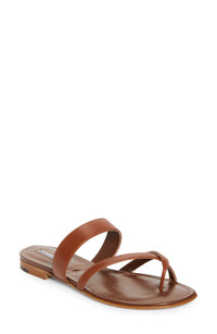 Elevated ease defines this sandal fashioned from Italian lambskin leather and designed straps that cross over the big toe. Leather upper, lining and sole Made in Italy Designer Shoes
