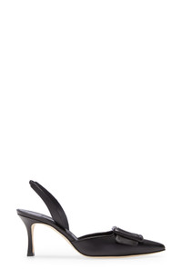 A wrapped buckle sets off the sharp pointy-toe silhouette of an Italian pump lifted by a curvy heel and finished with a stretchy slingback strap. 3 1/4" (83mm) heel;(size 38.5) Elasticized slingback strap Leather upper, lining and sole Made in Italy Women's Designer Shoes