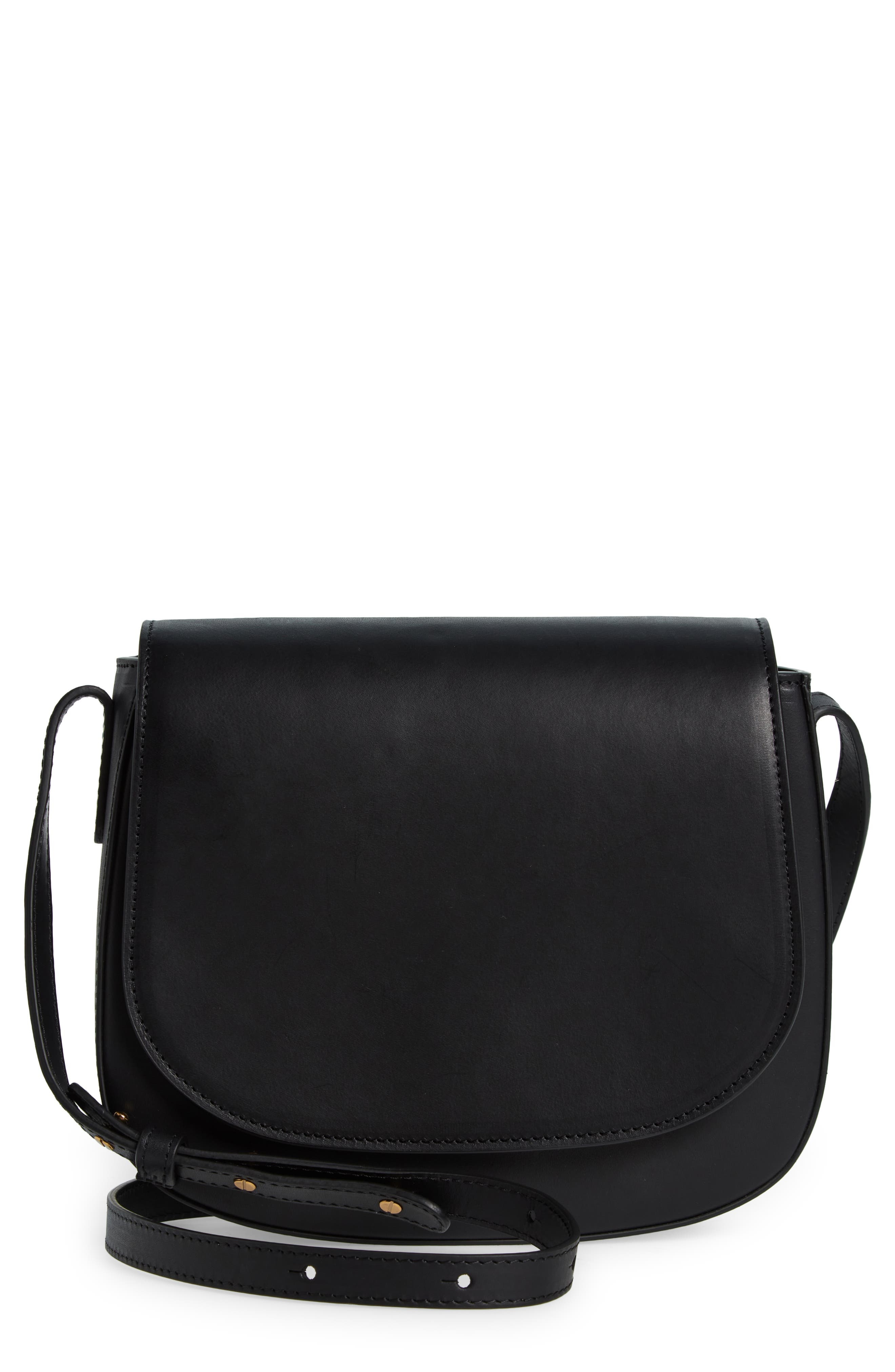 The label's elegant minimalism informs the classic silhouette and discreet foil logo of a crossbody bag crafted in Italy from vegetable-tanned leather. Snap-flap closure Adjustable crossbody strap Interior wall pocket Canvas lining Leather Made in Italy Designer Handbags