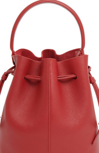 A drawstring-gathered topline brings soft dimension to this minimalist leather bucket bag that can be carried in hand or crossbody style. 7" x 9 1/2" x 4 3/4" 4 1/4" handle drop; 18"–22" shoulder strap drop 0.95 lb. Drawstring closure Top carry handle; removable, adjustable crossbody strap Structured silhouette with flat base for stability Leather Made in Italy Designer Handbags