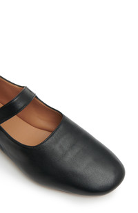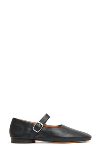 Supple leather and a streamlined profile define an Italian-made flat fashioned with a square toe and secured by an adjustable mary jane strap. Adjustable strap with buckle closure Leather upper, lining and sole Made in Italy