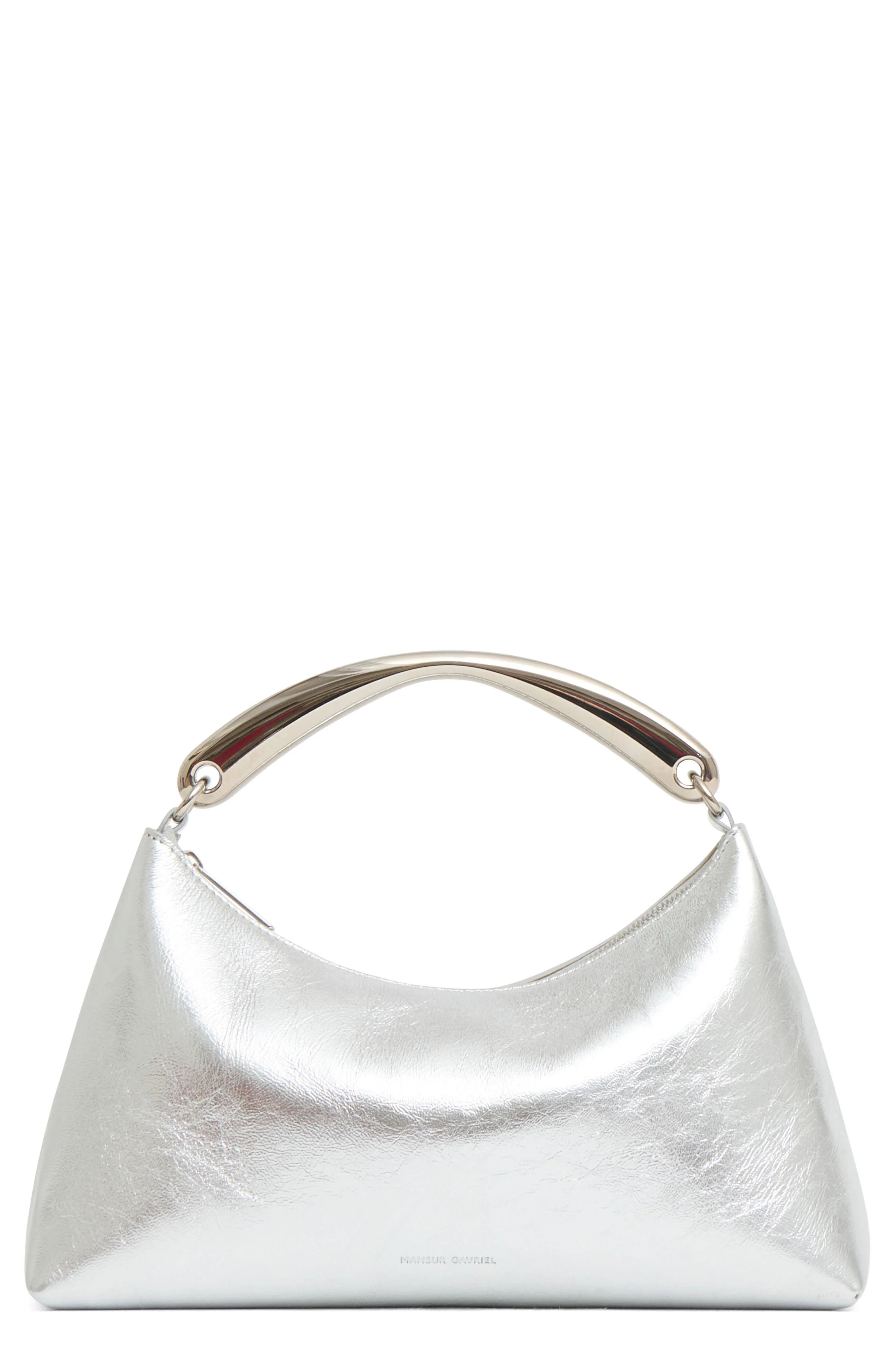 Mansur Gavriel Rhea Metal Handle Leather Bag in Silver at Nordstrom