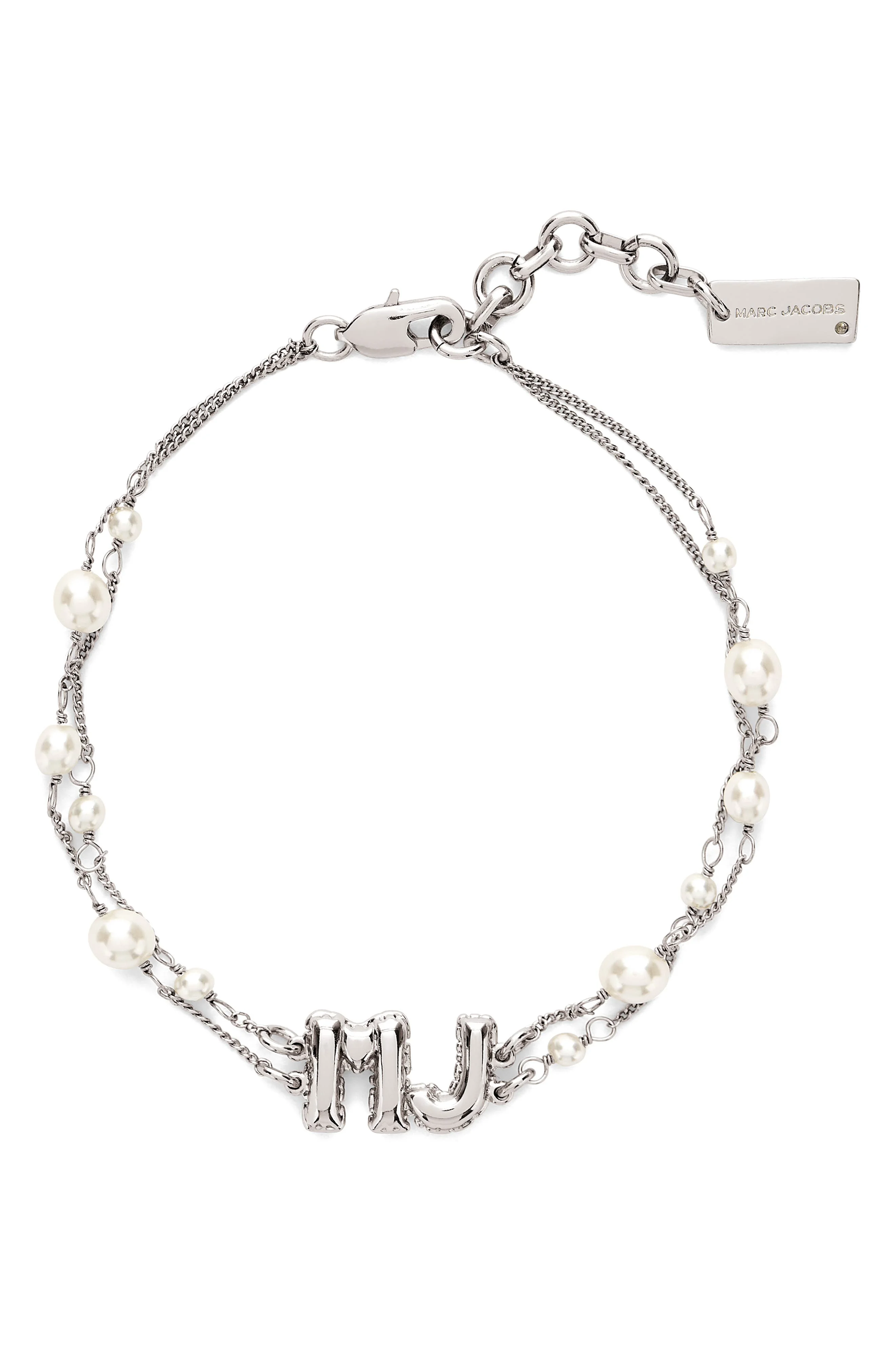 Marc Jacobs MJ Balloon Charm Faux Pearl Bracelet in Silver at Nordstrom