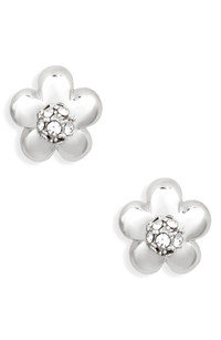 These delicate daisy stud earrings bring signature style to your lobes with their crystal centers that flash and sparkle in the light. Post back Silvertone plate or goldtone plate/crystal Imported