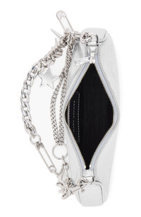 A structured profile exudes '90s-inspired appeal on a slim shoulder bag suspended from a high-polish chain strap detailed with motif charms for a signature flourish. 9 3/4" x 4 1/2" x 1" 10" shoulder strap drop Top zip closure Removable chain strap; removable shoulder strap Structured silhouette with flat base for stability Lined Leather or cotton Imported