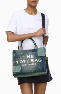 Deconstructed denim and raised logo embroidery turn this recognizable tote bag into a textural treat for your daily ensembles. Top zip closure Top carry handles; removable, adjustable crossbody strap Exterior slip pockets Interior card slot; zip pocket and wall pockets Structured silhouette with flat base for stability Textile Imported