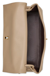 Signature logo hardware and rich leather distinguish a spacious shoulder bag that will complement your trendsetting looks. Front flap with turnlock closure Fixed shoulder strap Interior zip pocket Flat base for stability Lined Leather Imported