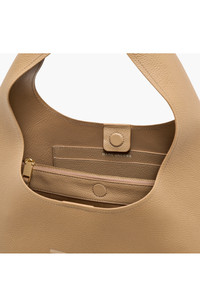 A bold debossed logo stands out against the richly grained leather of a spacious sack-style bag that boasts a comfortably wide handle and a divided interior. Magnetic closure Top carry handle Dual interior compartments with center zip-pocket divider; two slip wall pockets; removable zip pouch Leather Imported Designer Handbags