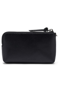 This compact leather clutch packs a major style punch with gleaming logo hardware and a dainty wrist strap. 6 3/4" x 4" x 1" Top zip closure Removable wrist strap Lined Leather/synthetic Imported