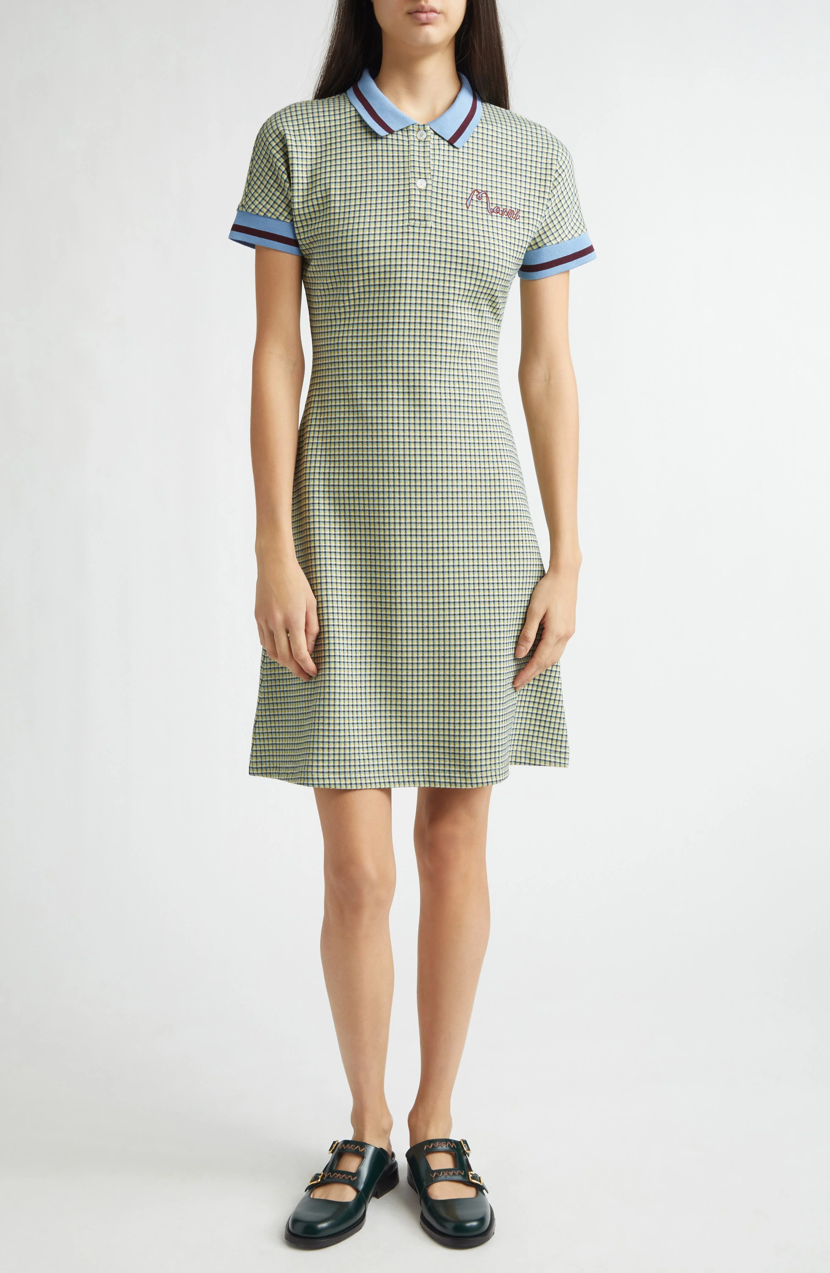 Marni Check Jacquard A-Line Polo Dress in Green/Vanilla at Nordstrom