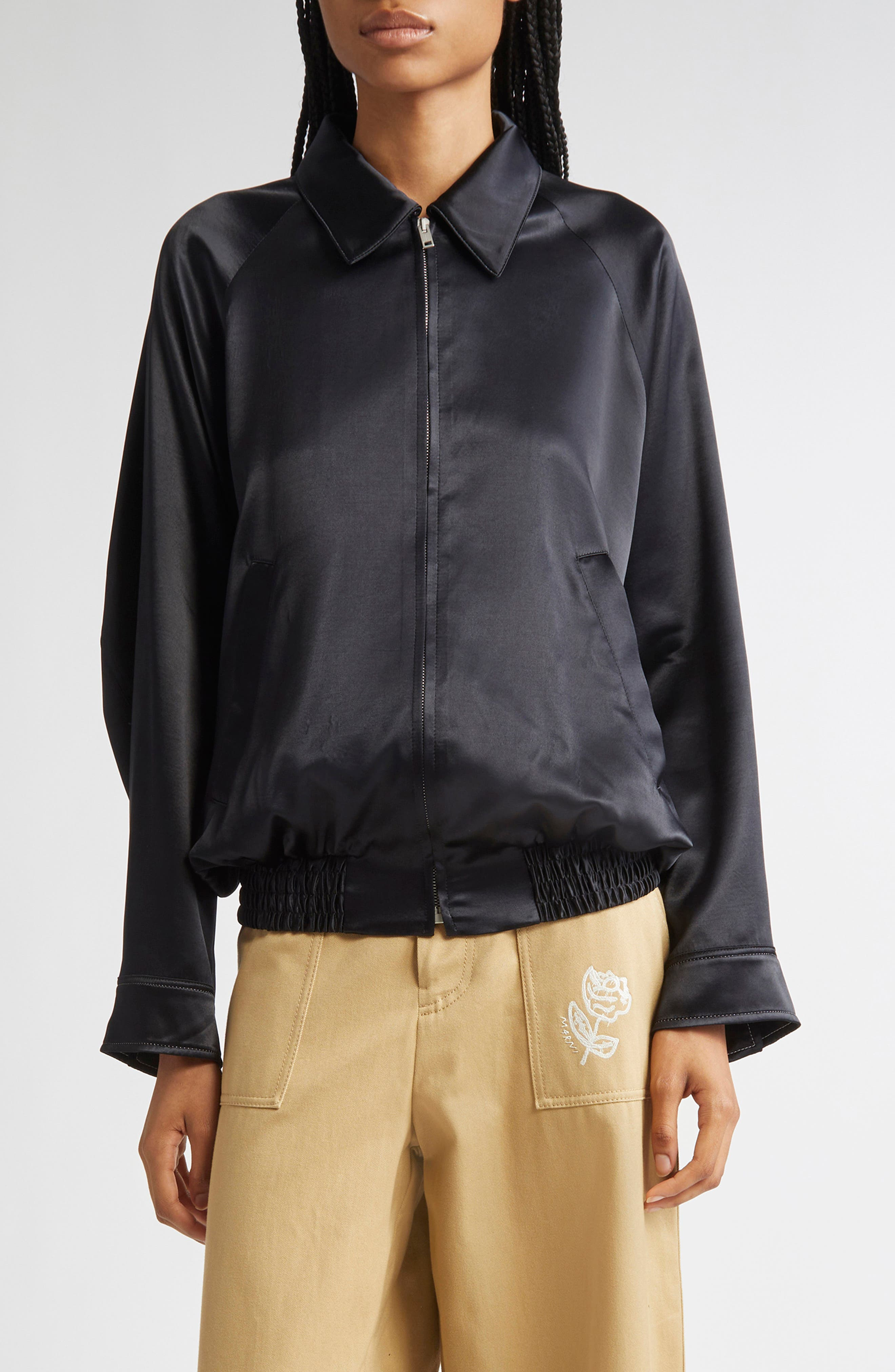 Marni Embroidered Satin Bomber Jacket in 00N99 Black at Nordstrom