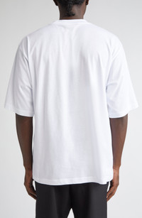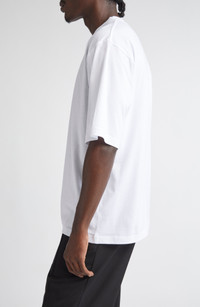 Dropped shoulders and a slouchy, oversized fit bring the fashion house's fresh vision to this capsule-essential tee centered with a tiny logo tag that mirrors the identical version inside the shirt. Crewneck Elbow-length sleeves 100% cotton Machine wash, dry flat Made in Italy Designer Clothing