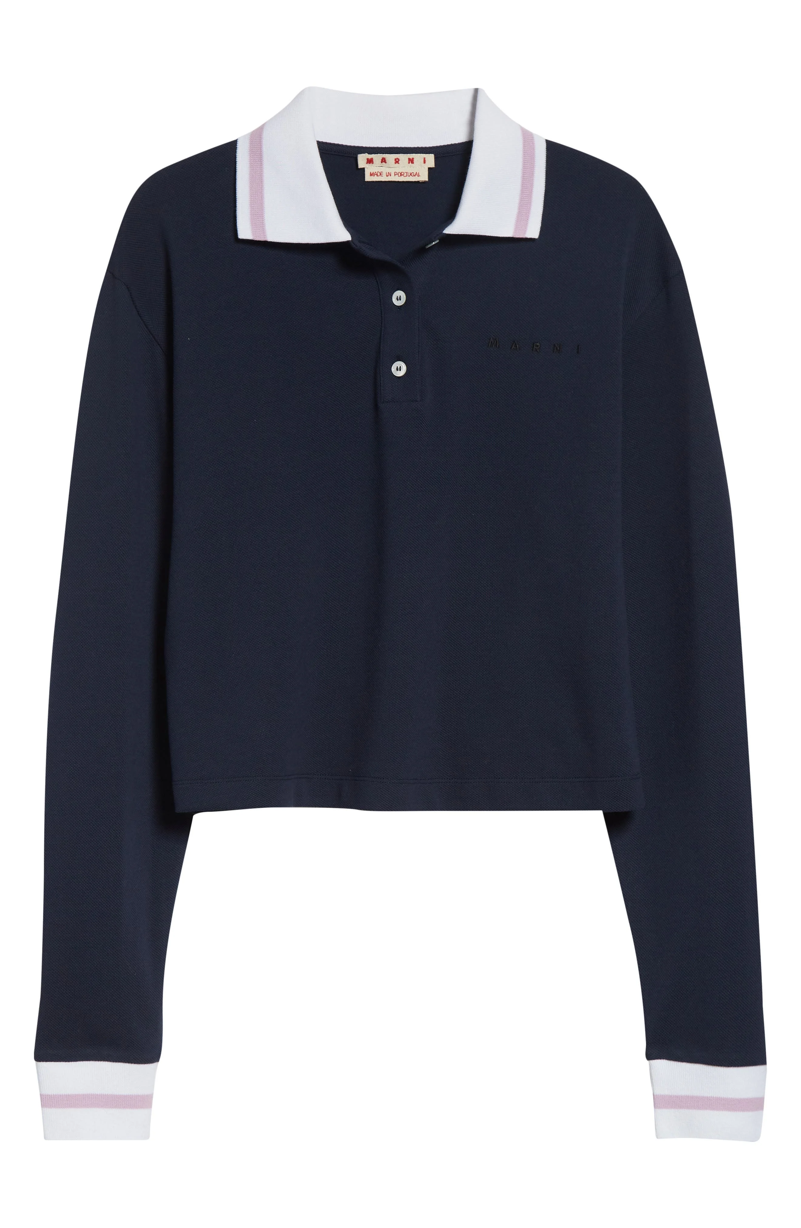 Marni brings a preppy spin to your capsule wardrobe with this long-sleeved polo knit from soft cotton yarns. Button half placket Spread collar Long sleeves 100% cotton Dry clean Made in Italy Designer Clothing